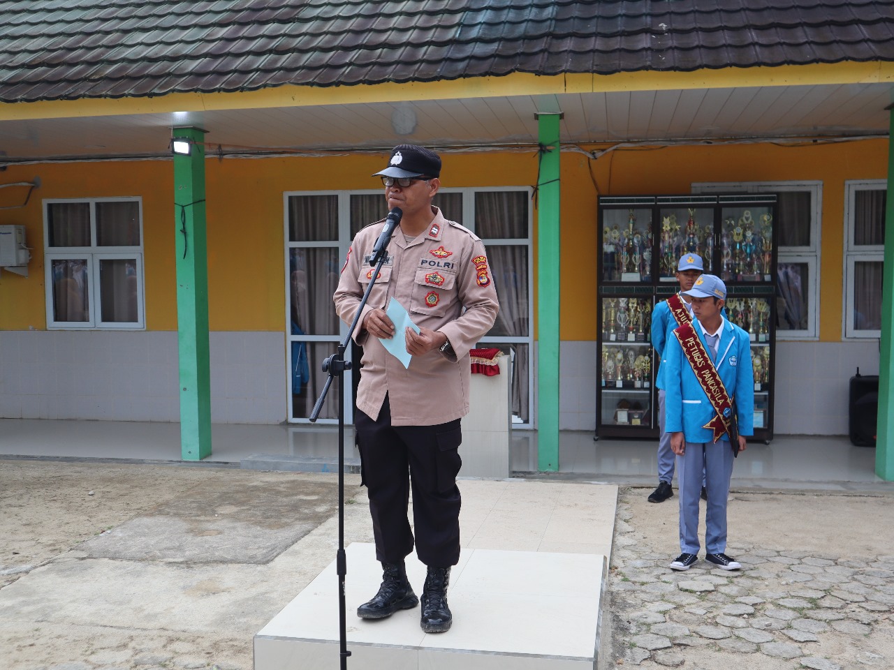 Giat dilaksanakan oleh Kasat Samapta AKP Yus MawPelardi S.H dengan menjadi Inspektur upacara di Sekolah MAN 01 Simpang Pematang, IPTU Tata Subrata menjadi Irup di SMAN 01 Mesuji Timur dan Kanit Binkamsa AIPTU Muharman DS menjadi Irup di SMAN 01 Simpang Pematang.